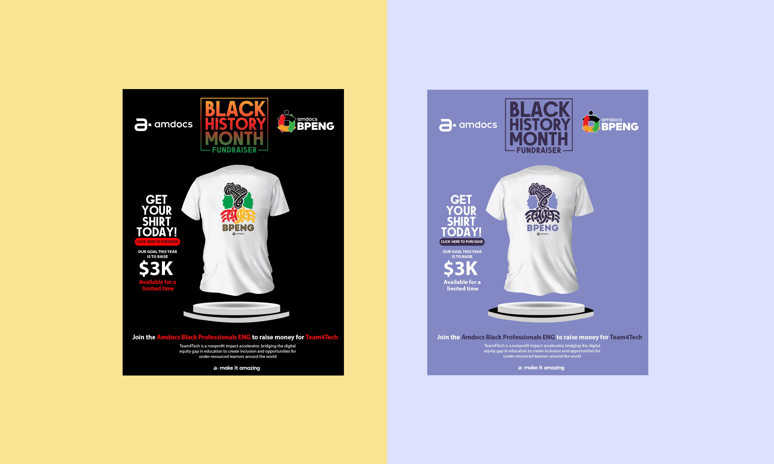 T-shirt / Merchandise design for Black History Month and merch T-shirt layout and flyer design for AMDOCS/BPENG Black Professionals Employee Networking Group.